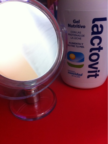 Y de regalo nos daban una bolsita con gel de baño Lactovit y un espejo con aumento.